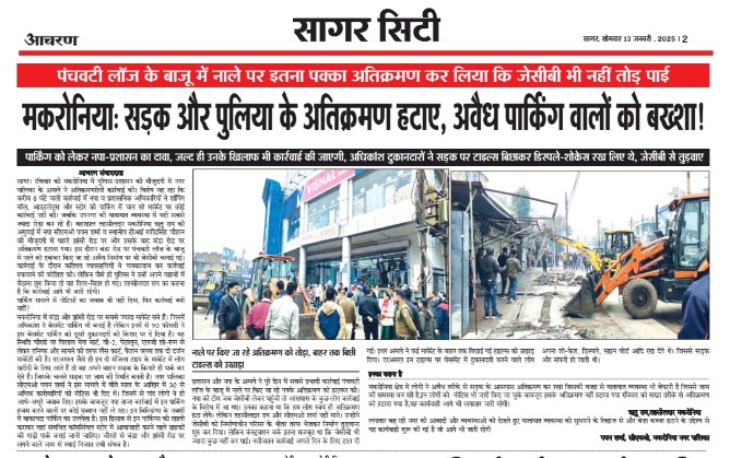 मकरोनिया: सड़क और पुलिया के अतिक्रमण हटाए, अवैध पार्किंग वालों को बख्शा!