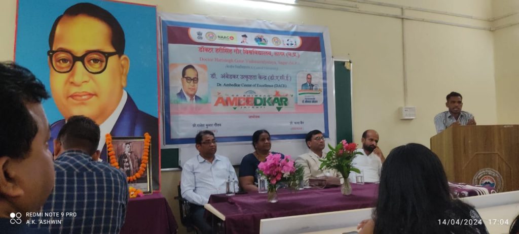 डा.आंबेडकर उत्कृष्ट केंद्र डॉक्टर हरि सिंह गौर विश्वविद्यालय सागर. मे बाबा साहेब भीमराव अंबेडकर सी 133 वीं जयंती का कार्यक्रम आयोजित किया गया जिसमें बड़ी संख्या में शिक्षक व विद्यार्थी सम्मिलित हुए। कार्यक्रम में मूल रूप से विद्यार्थियों के द्वारा. डॉ आंबेडकर के जीवन एवं उनके कार्यों पर प्रकाश डाला गया। कार्यक्रम की मुख्य वक्ता केंद्र की समन्वयक प्रोफेसर चंदाबेन ने विद्यार्थियों की भागीदारी पर संतोष जाहिर किया। उन्होंने कहा कि भविष्य में भी वह डॉ भीमराव अंबेडकर के बारे में अध्ययन करें और इसे अपने समाज एवं देश तक पहुंचाएं। कार्यक्रम के डॉ वीरेंद्र मटसानिया, डॉ. रानहेत गौतम, सतीश जी, अजब सिंह, बालचंदआदि ने अपने विचार व्यक्त किया। कार्यक्रम के समापन पर केंद्र के उप-समन्वयक प्रोफेसर राजेश गौतम ने आभार व्यक्त किया। इसके बाद सभी लोग विवि के स्थापना स्तंभ के पास एकत्रित हुए। वहां उनके नाम का केक काटा गया एवं मोमबत्ती जलाकर नारे लगाए गए।