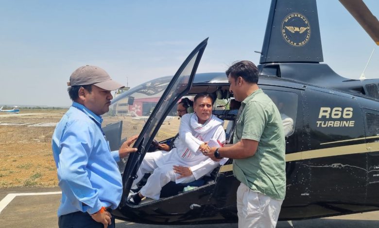 हेलीकॉप्टर से प्रचार करते कांग्रेस प्रत्याशी गुड्डू राजा के पैरों में गोल्ड स्टार के सस्ते जूते