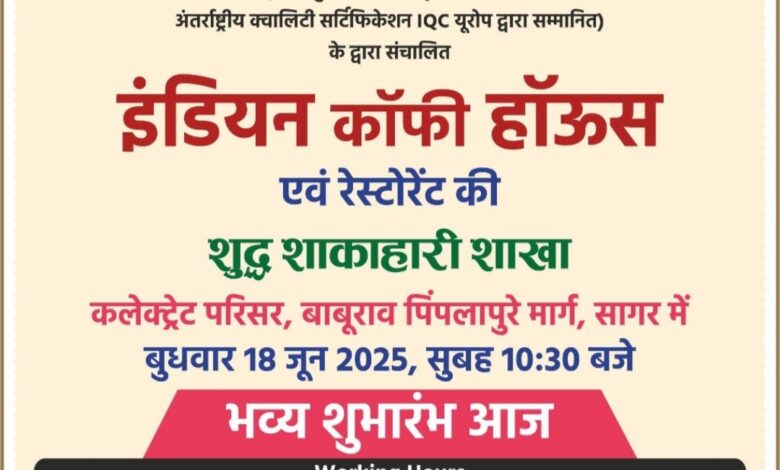 सागर। इंडियन कॉफी हाउस की एक ब्रांच कलेक्टोरेट में बुधवार से शुरु हो रही है। इस ब्रांच में कॉफी के अलावा साउथ इंडियन व्यंजन तो होंगे ही साथ ही यहां शुद्ध शाकाहारी भोजन भी उपलब्ध होगा। इस नई ब्रांच का उद्घाटन सुबह 10.30 बजे होगा बीते कुछ वर्षों में शहर में शुरु हुई ICH की ब्रांचों में यह सबसे मुफीद जगह पर बताई जा रही है। डीजे बंगला से विवि की तरफ जाने वाले रास्ते पर इस ब्रांच के लिए पृथक से प्रवेश द्वार दिया गया है। दूसरी ओर एक जानकारी ये भी है कि ICH की विवि शाखा को इसी माह बंद कर दिया जाएगा।