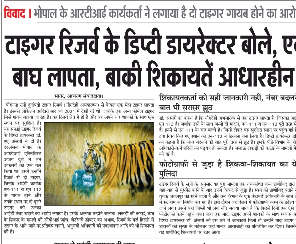 टाइगर रिजर्व के डिप्टी डायरेक्टर बोले, एक बाघ लापता, बाकी शिकायतें आधारहीन!