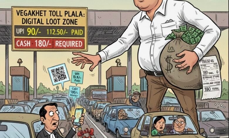 सागर। डिजिटल इंडिया और कैशलेस सुविधा के नाम पर हाईवे पर कैसे आम जनता की जेब काटी जा रही है, इसका एक सनसनीखेज मामला सागर के उपभोक्ता आयोग पहुँचा है। एक अधिवक्ता के साथ ललितपुर-झाँसी हाईवे स्थित वीगाखेत टोल प्लाजा पर जो हुआ, वह न केवल सेवा में कमी है, बल्कि उपभोक्ताओं के साथ खुलेआम धोखाधड़ी की ओर इशारा करता है। सागर निवासी अधिवक्ता पवन कुमार सोनी ने भारतीय राष्ट्रीय राजमार्ग प्राधिकरण (एनएचएआई) और वीगाखेत टोल प्लाजा के खिलाफ आयोग में परिवाद दायर किया है। परिवादी के अनुसार, 15 नवंबर 2025 को सुबह जब वह ओरछा जा रहे थे, तब टोल प्लाजा पर उनसे एक ही यात्रा के लिए तीन बार पैसे वसूले गए।