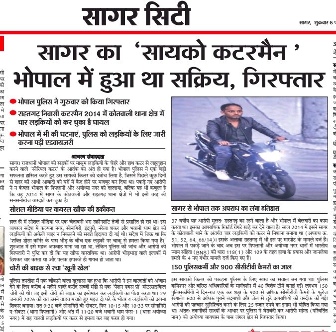 सागर का “सायको कटरमैन ” भोपाल में सक्रिय, गिरफ्तार