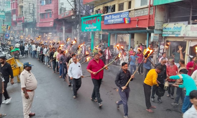 बस ऑपरेटर्स की मशाल से मशाल जलाने पहुंचे शहरवासी, जुलूस निकाल किया विरोध प्रदर्शन