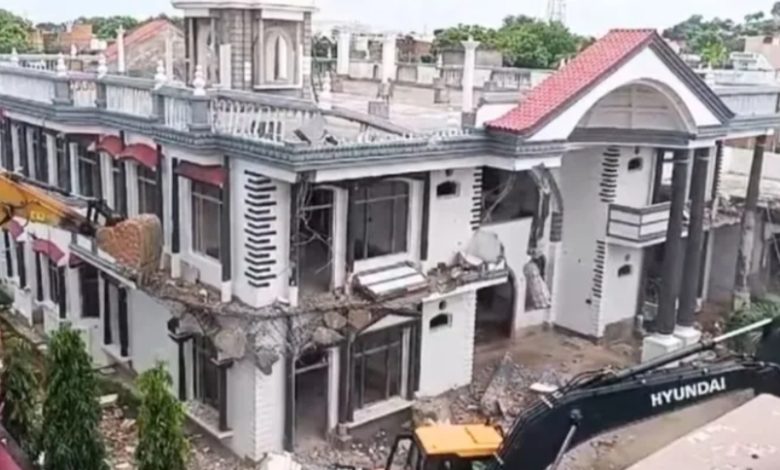 छतरपुर में पुलिस पर पथराव के सूत्रधार शहजाद अली का करोड़ों का बंगला ढहाया