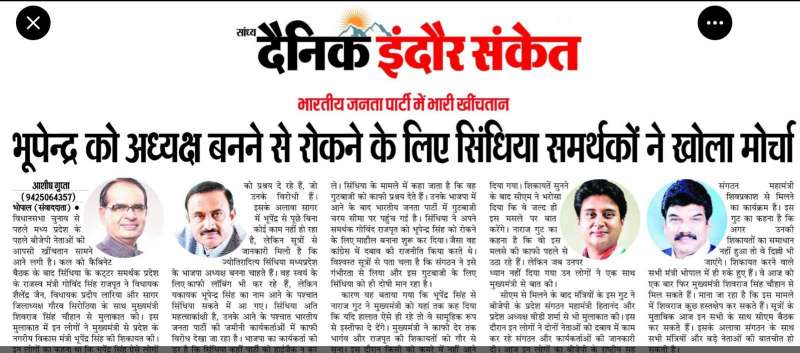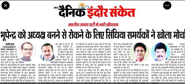 भाजपा प्रदेश अध्यक्ष के पद पर सेंधमारी की कोशिश में ‘महाराज’