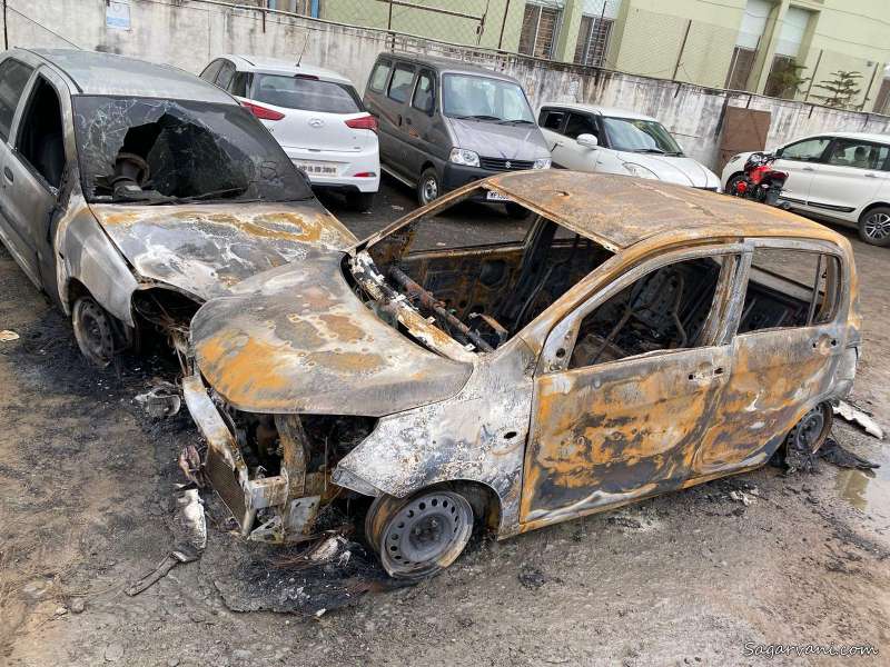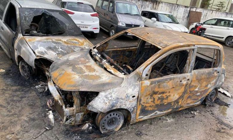 संजय ड्राइव के पास पेड पार्किंग कम्पाउन्ड में कारें जलीं
