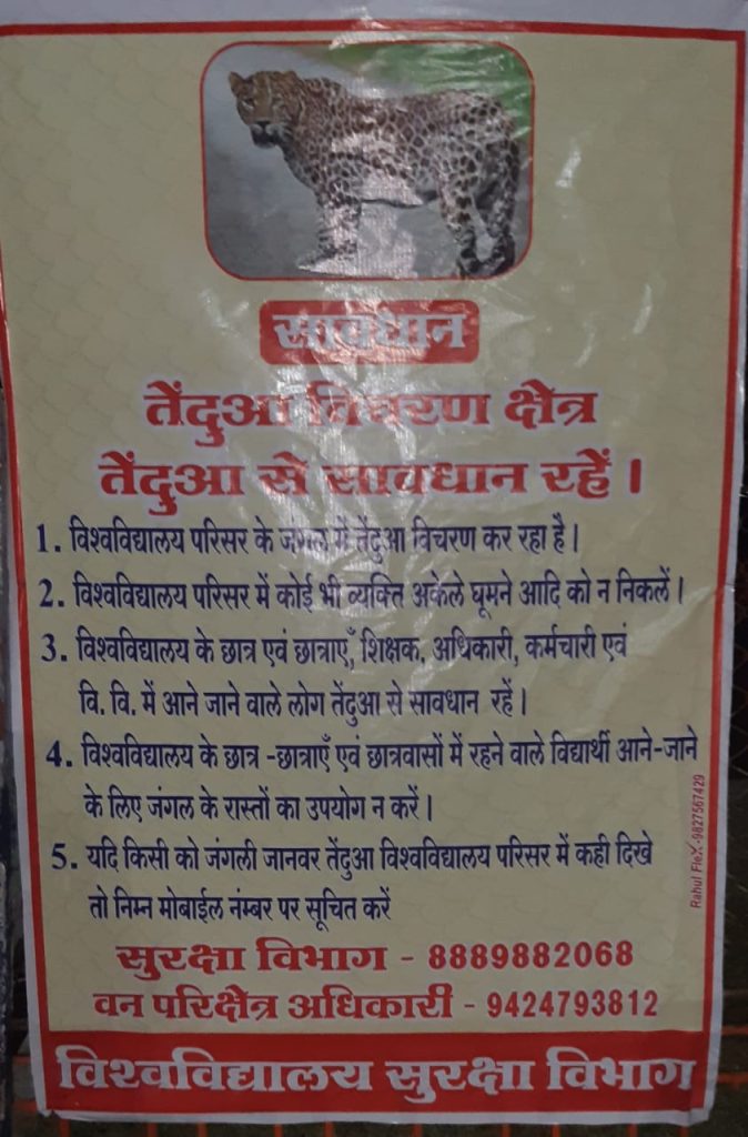 तार-फेन्सिंग दुरुस्त कराने के बजाव विवि की कोशिशें पोस्टरबाजी तक - रमन और भाभा छात्रावास निवासी युवकों ने आधी रात को तेंदुए को विचरते देखा