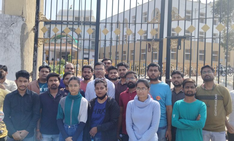 कलेक्टोरेट के गेट पर नारेबाजी, तकनीकी विशेषज्ञ वाली एसआईटी गठित करने की मांग