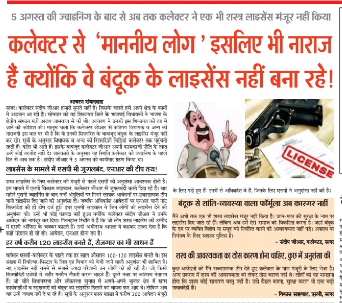 5 अगस्त की ज्वाइनिंग के बाद से अब तक कलेक्टर ने एक भी शस्त्र लाइसेंस मंजूर नहीं किया